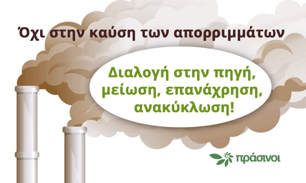 Όπισθεν ολοταχώς κάνει η κυβέρνηση στη διαχείριση των απορριμμάτων για να κάνει το χατίρι συγκεκριμένων επιχειρηματικών λόμπι. Στην αντίθετη κατεύθυνση από τις ευρωπαϊκές Οδηγίες, σχεδιάζει να επαναφέρει το φάντασμα της καύσης των απορριμμάτων, αντί της μείωσης, της διαλογής στην πηγή, της ανακύκλωσης και της κομποστοποίησης.