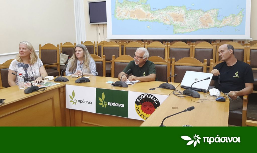 Την αντίθεσή τους στις εξορύξεις υδρογονανθράκων και την καύση απορριμμάτων εξέφρασαν σε συνέντευξη Τύπου στο Ηράκλειο οι Πράσινοι, στα πλαίσια της περιοδείας τους στην Κρήτη. Επίσης, αντιτάχθηκαν στην κατασκευή και λειτουργία του αεροδρομίου που σχεδιάζεται στο Καστέλι καθώς και στα αιολικά που δεν σέβονται το περιβάλλον.