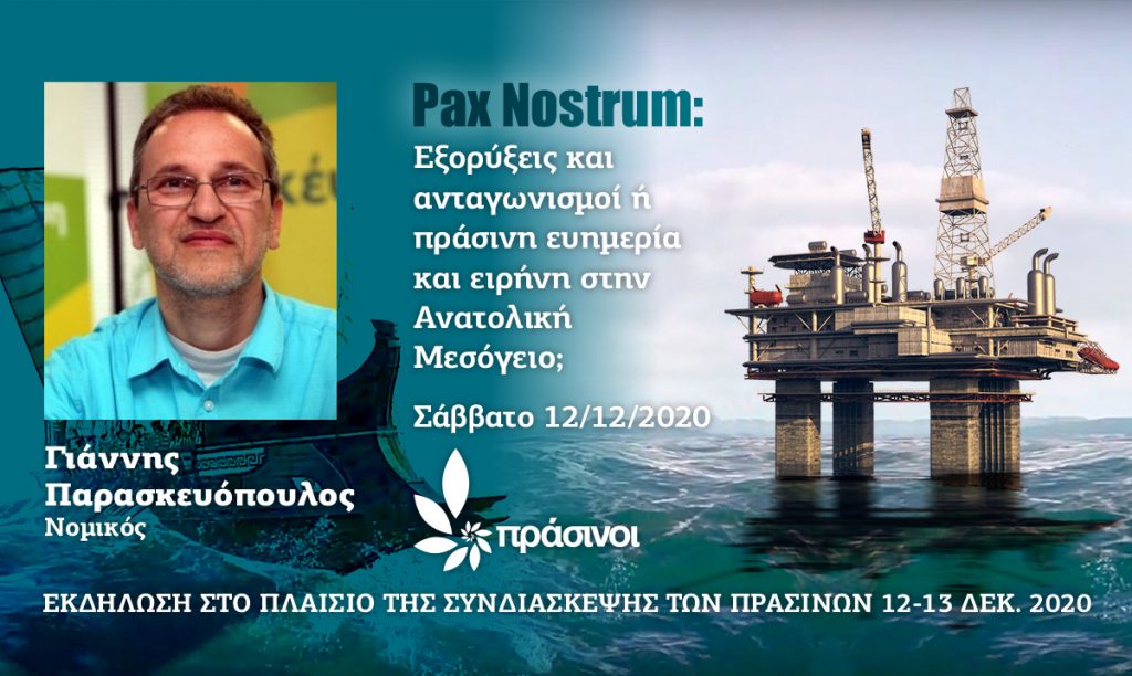 Περίληψη της τοποθέτησης του Γιάννη Παρασκευόπουλου, μέλους του Συμβουλίου των Πράσινων στη διεθνή διαδικτυακή εκδήλωση «Pax Nostrum: Εξορύξεις και ανταγωνισμοί ή πράσινη ευημερία και ειρήνη στην Ανατολική Μεσόγειο;» που έγινε τα πλαίσια της Συνδιάσκεψης των Πράσινων 12 και 13 Δεκεμβρίου 2020.