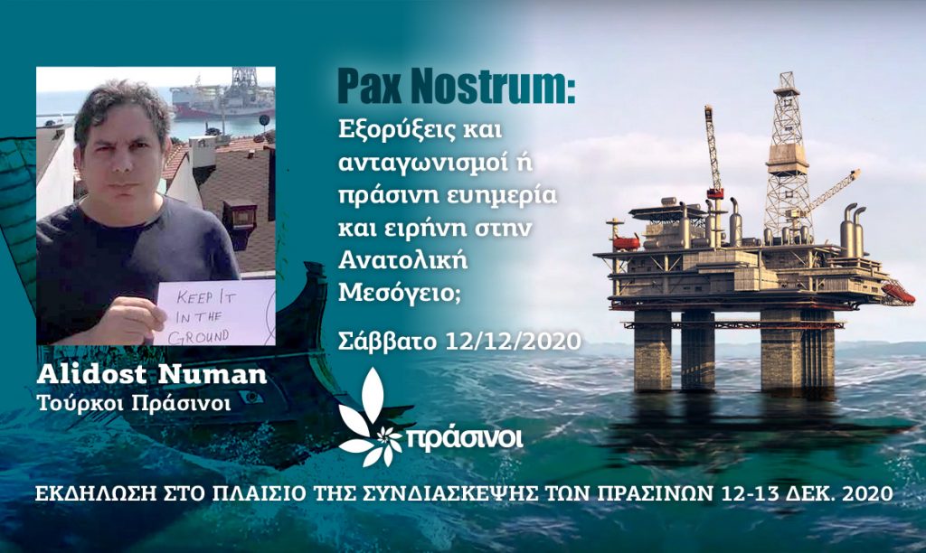 Περίληψη της τοποθέτησης του εκπρόσωπου των Τούρκων Πράσινων Alidost Numan, στη διεθνή διαδικτυακή εκδήλωση «Pax Nostrum: Εξορύξεις και ανταγωνισμοί ή πράσινη ευημερία και ειρήνη στην Ανατολική Μεσόγειο;» που έγινε τα πλαίσια της Συνδιάσκεψης των Πράσινων 12 και 13 Δεκεμβρίου 2020.