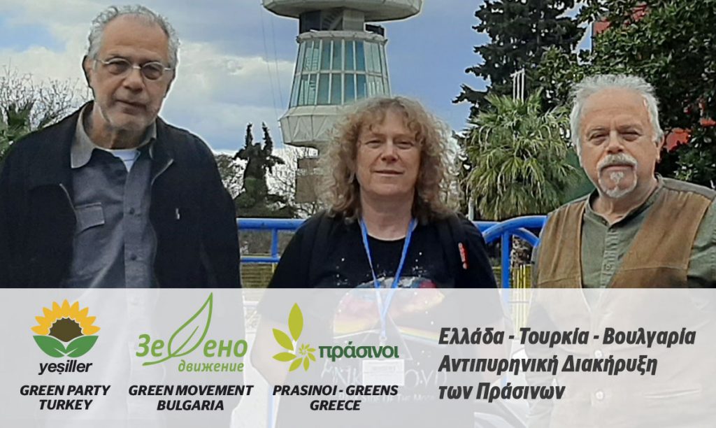 Bulgaristan, Yunanistan ve Türkiye Yeşilleri olarak, nükleer enerjinin elektrik üretimi için sözde barışçıl kullanımı ile fosil yakıtların çıkarılması ve kullanılmasına karşı olduğumuzu beyan ediyoruz. Hükümetlerimizi de çevreye ve sürdürülebilirliğe saygı gösterip yenilenebilir enerji biçimlerine eğilmeye ve enerji tasarrufu yapmaya çağırıyoruz.