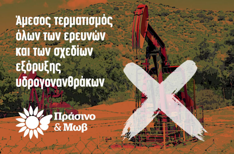 Να τερματιστούν άμεσα τα σχέδια εξόρυξης υδρογονανθράκων στη χώρα, απαιτεί η συμμαχία Πράσινο & Μωβ Αίτημα αιχμής για τη συμμαχία Πράσινο & Μωβ ο άμεσος