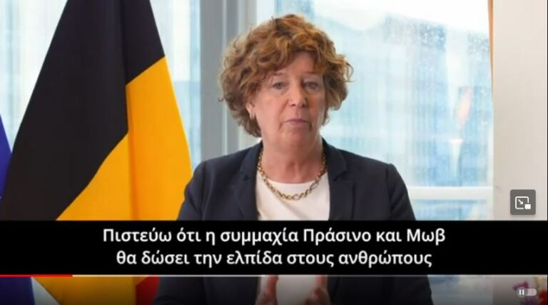 Εξαιρετικά τιμητική είναι η δήλωση της αναπληρώτρια πρωθυπουργού του Βελγίου Petra De Sutter για τη συμμαχία Πρασινο & Μωβ. Η Petra De Sutter εξαίρει το