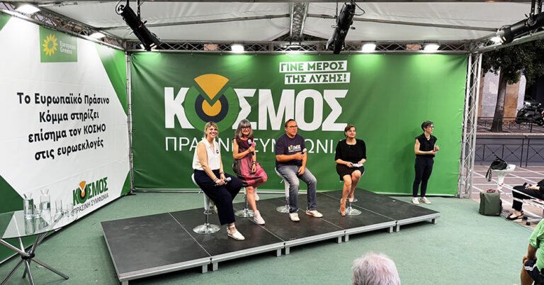 Πολύ παραγωγική η συζήτηση που οργανώθηκε στην κεντρική προεκλογική συγκέντρωση του ΚΟΣΜΟΣ. Για μια φορά ακόμη αποδείχθηκε ότι οι Ευρωπαίοι Πράσινοι που εκπροσωπούνται από τους