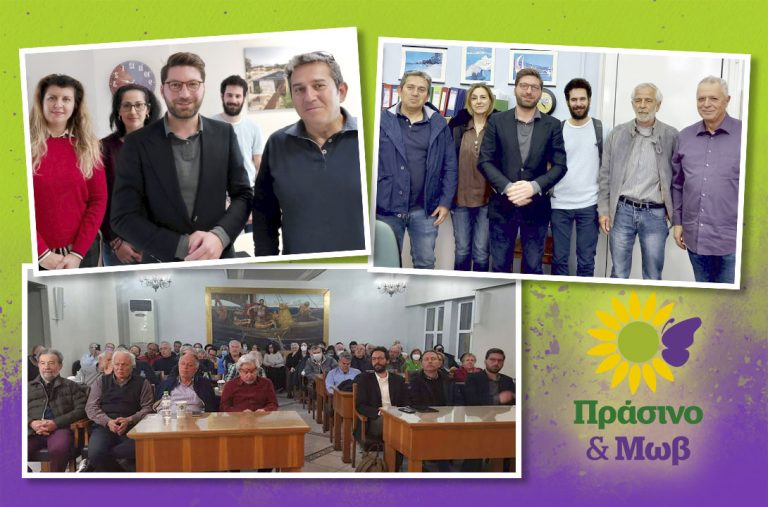 Την Παρασκευή 10 Μαρτίου βρέθηκε στο Βόλο αντιπροσωπεία της συμμαχίας Πράσινο & Μωβ, με τον συνεπικεφαλής Δομήνικο Χρυσίδη, τον Κώστα Βλαχόπουλο – υποψήφιο βουλευτή Ιωαννίνων,