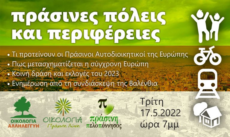 Παρακολουθήστε όλη την εκδήλωση σε βίντεο. Πρασινίζουν οι πόλεις και οι περιφέρειες της Ευρώπης! Εκδήλωση αυτοδιοικητικών κινήσεων Τα αποτελέσματα του Συνεδρίου των Πράσινων Αυτοδιοικητικών όλης