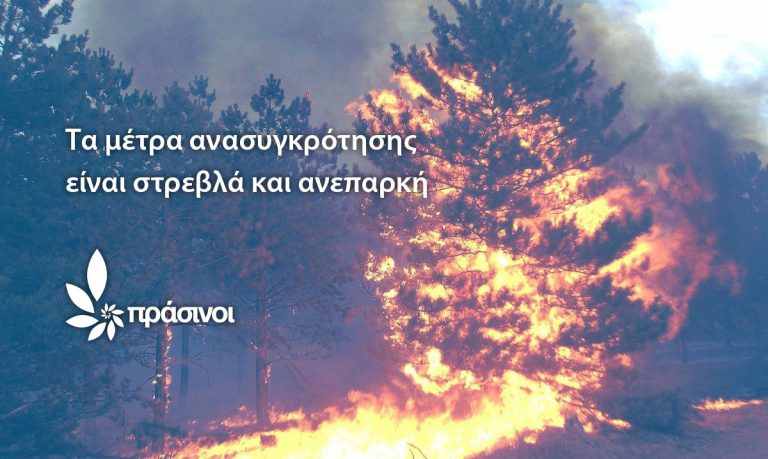 Κυνική ομολογία ότι οι κυβερνητικές προτεραιότητες θέτουν σε τελευταία μοίρα τα δάση και το φυσικό κεφάλαιο της χώρας, θεωρεί το νέο κόμμα των Πράσινων τη