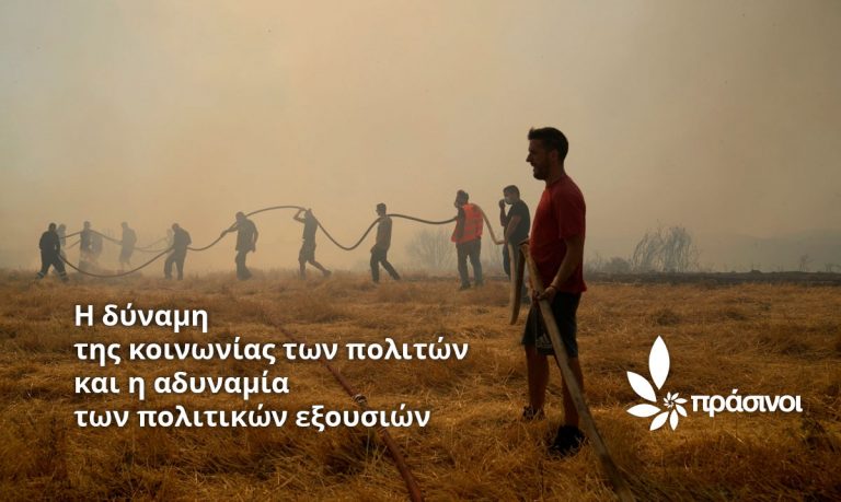 Απαράδεκτη και επικίνδυνη διαστρέβλωση θεωρεί το νέο κόμμα των Πράσινων τη χθεσινή δημόσια αναφορά του πρωθυπουργού για «πρωτοφανή επίθεση της φύσης». Τονίζουν ότι τέτοιες αναφορές
