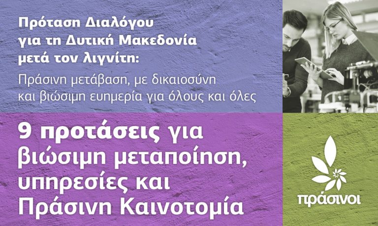 Πρόταση Διαλόγου για τη Δυτική Μακεδονία μετά τον λιγνίτη: Πράσινη μετάβαση, με δικαιοσύνη και βιώσιμη ευημερία για όλους και όλες 9 προτάσεις για βιώσιμη μεταποίηση,