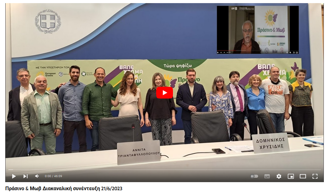 Την Τετάρτη 21 Ιουνίου στη 13:00 το μεσημέρι πραγματοποιηθηκε η διακαναλική συνέντευξη του Πράσινο Και Μωβ στην αίθουσα της Γενικής Γραμματείας Μέσων Ενημέρωσης, στην οδό Φραγκούδη 11 στην Καλλιθεα. Το Πράσινο και Μωβ παρουσίασε τις βασικές του θέσεις καλώντας του πολίτες να στηρίξουν την συμμαχία επτά διαφορετικών δυνάμεων, οι οποίες επικεντρώθηκαν σε όσα τους ενώνουν …